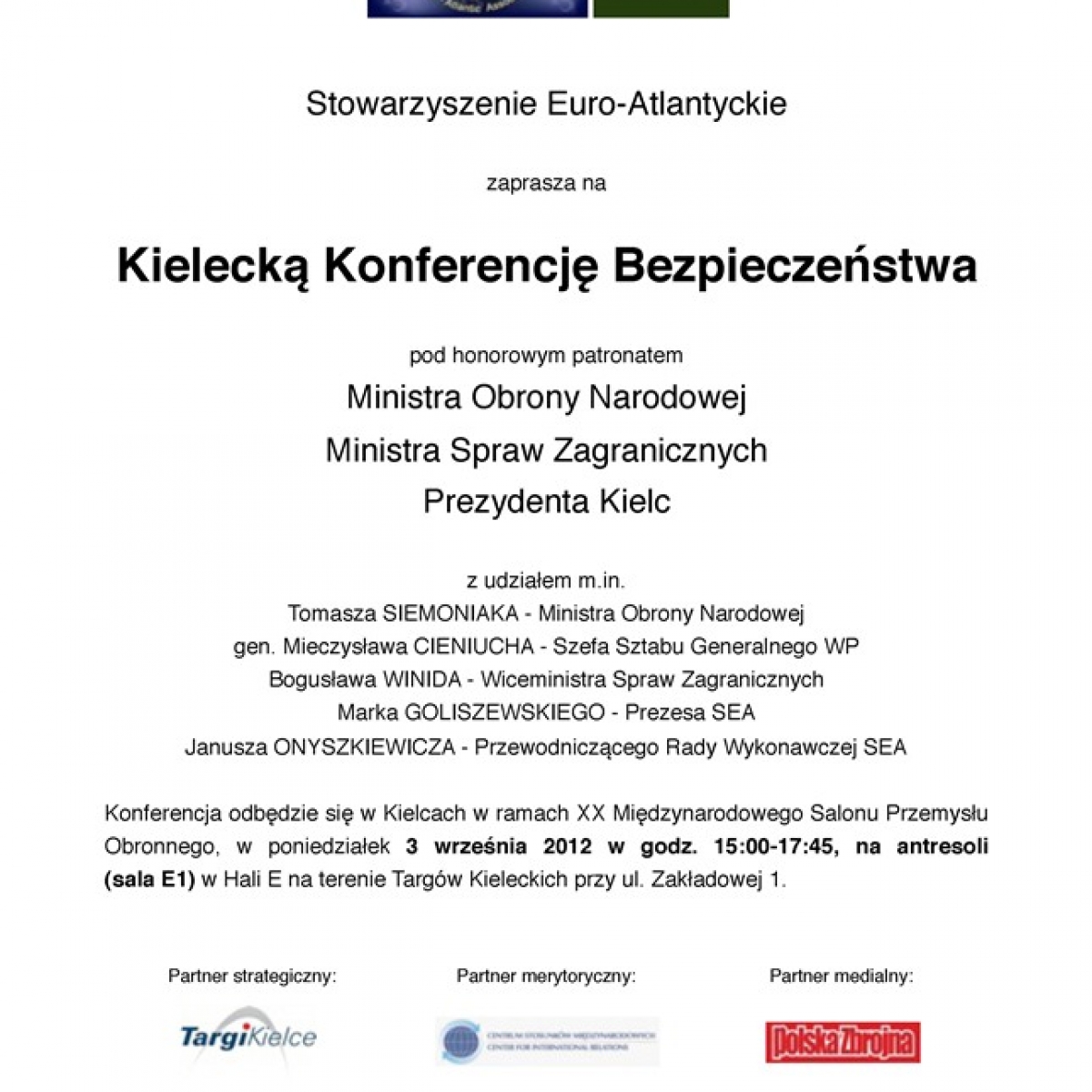 W dniu otwarcia dwudziestej edycji Międzynarodowego Salonu Przemysłu Obronnego tj. 3 września 2012 r. odbyła się Kielecka Konferencja Bezpieczeństwa zorganizowana przez Stowarzyszenie Euro-Atlantyckie w partnerstwie z Centrum Stosunków Międzynarodowych i Targami Kielce S.A. Partnerem medialnym konferencji była Polska Zbrojna. Konferencja odbywała się pod patronatem Ministra Obrony Narodowej, Ministra Spraw Zagranicznych i Prezydenta Kielc.